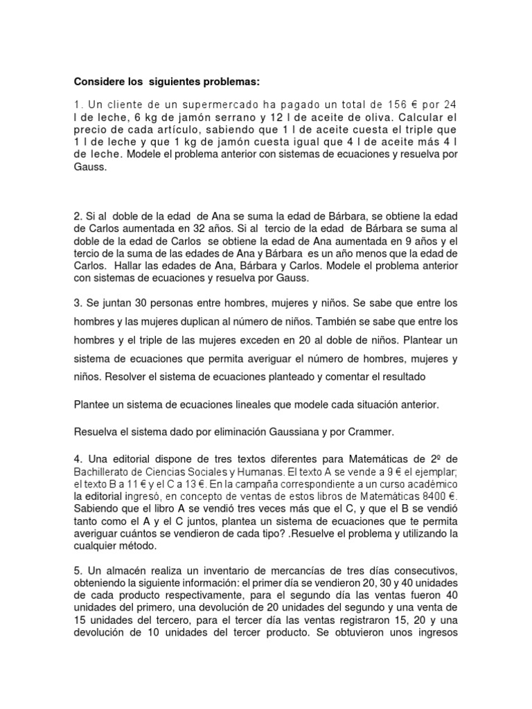 Considere los siguientes problemas: