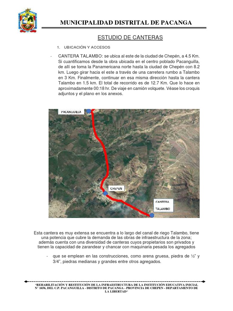 UBICACIÓN DE CANTERA: CHEPEN -LA LIBERTAD