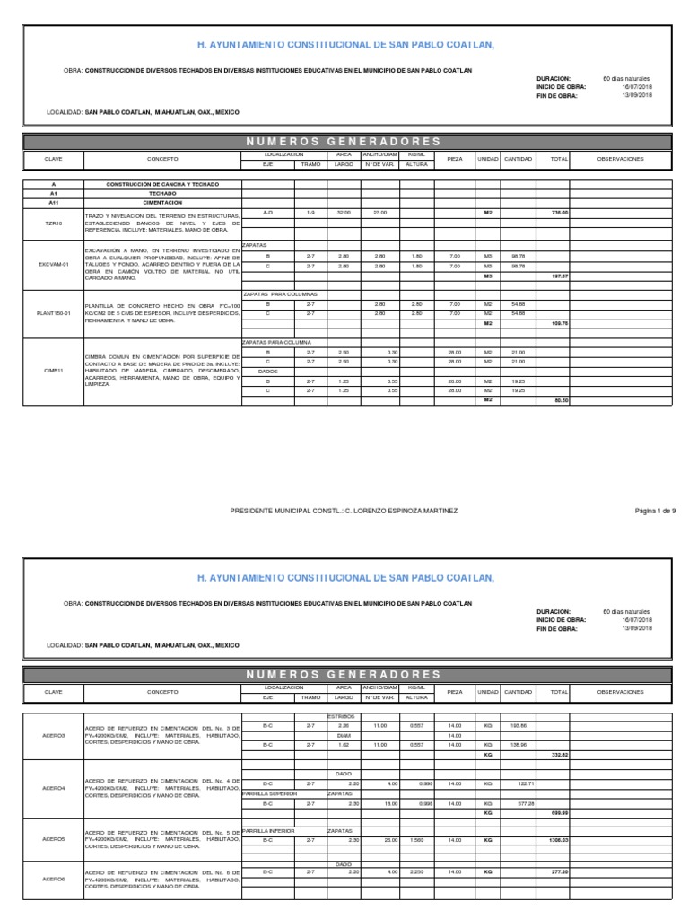 OBRA: CONSTRUCCION DE DIVERSOS TECHADOS EN DIVERSAS INSTITUCIONES EDUCATIVAS EN EL MUNICIPIO DE SAN PABLO COATLAN