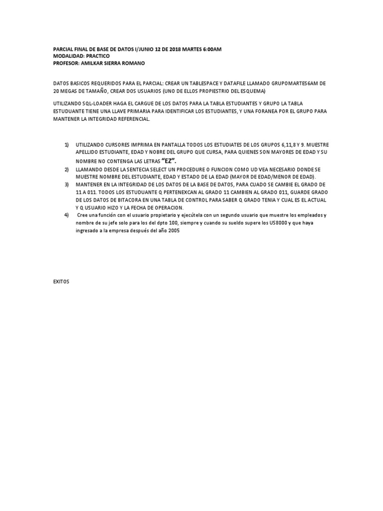 PARCIAL FINAL DE BASE DE DATOS I/JUNIO 13 DE 2018 MIERCOLES 12:00AM
