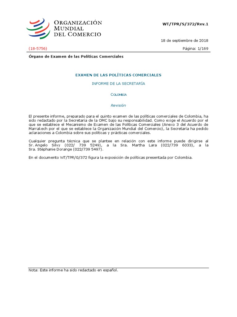 El presente informe, preparado para el quinto examen de las políticas comerciales de Colombia, ha