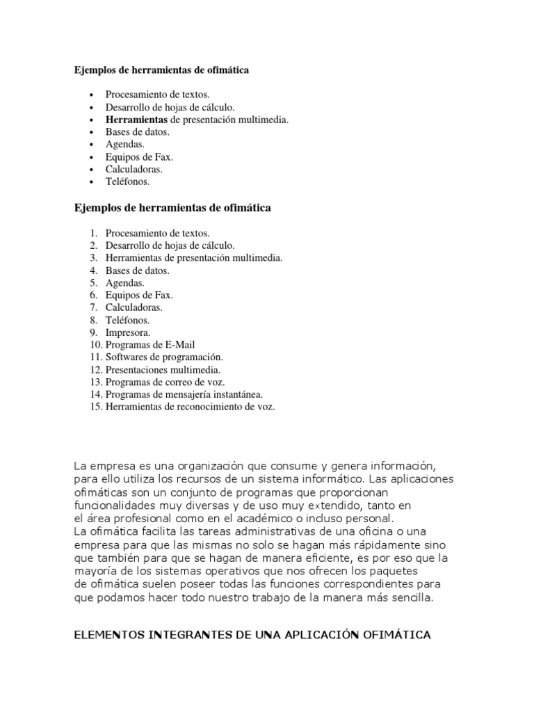 Ejemplos de herramientas de ofimática