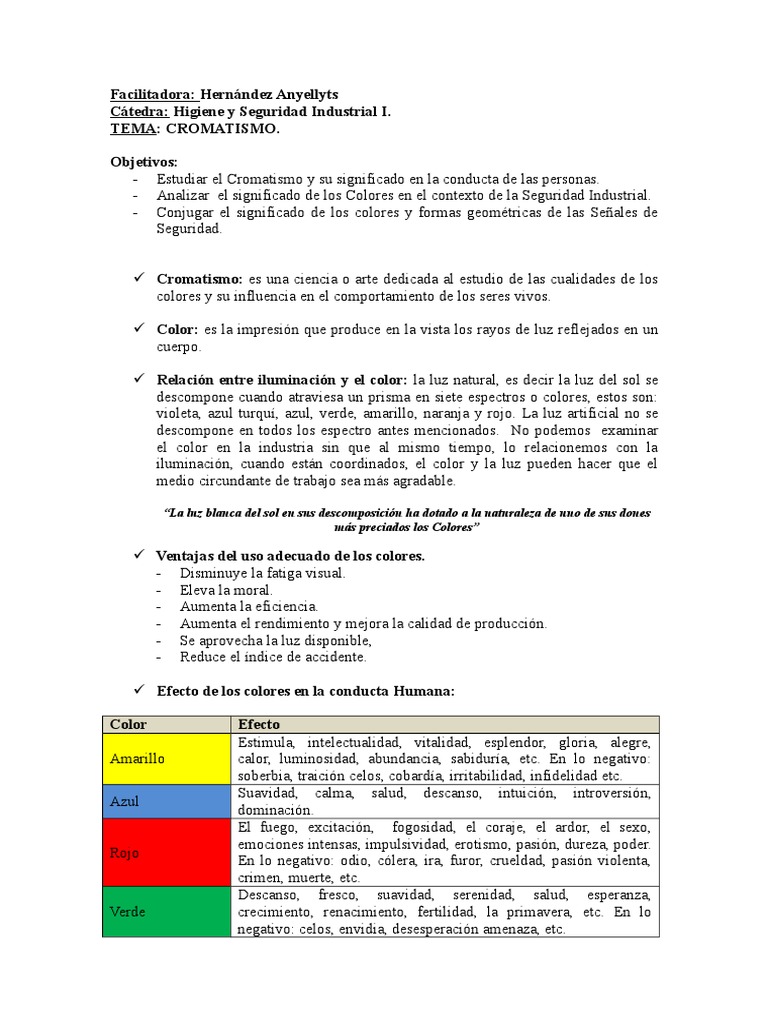 - Estudiar el Cromatismo y su significado en la conducta de las personas.