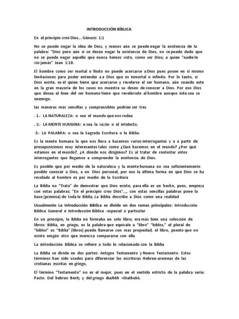 La introducción Bíblica se refiere a todo lo relacionado con la Biblia
