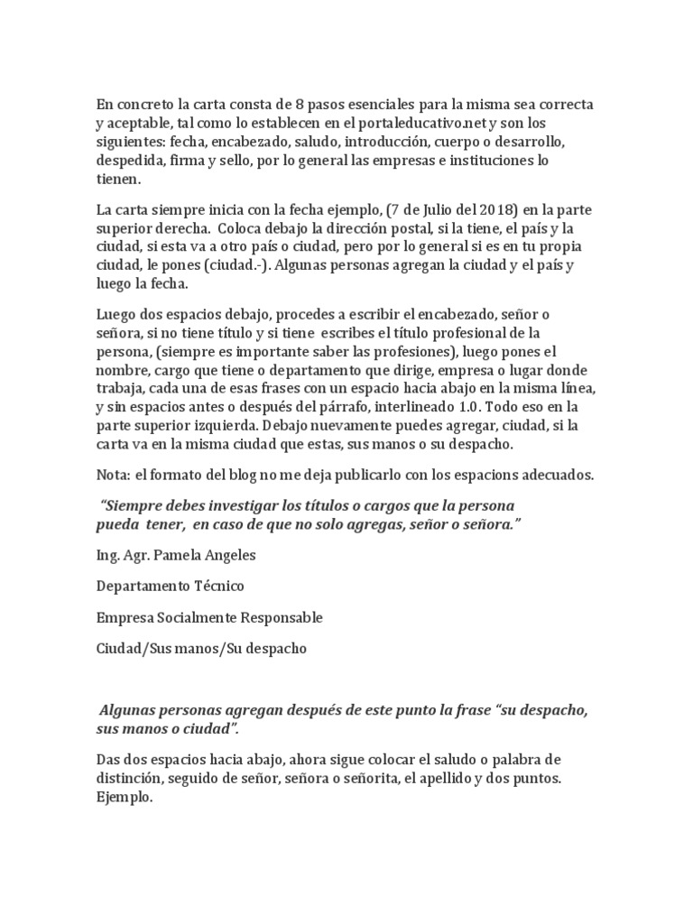 carta, la razón y el cuerpo o desarrollo. Haz el planteamiento claro y preciso.