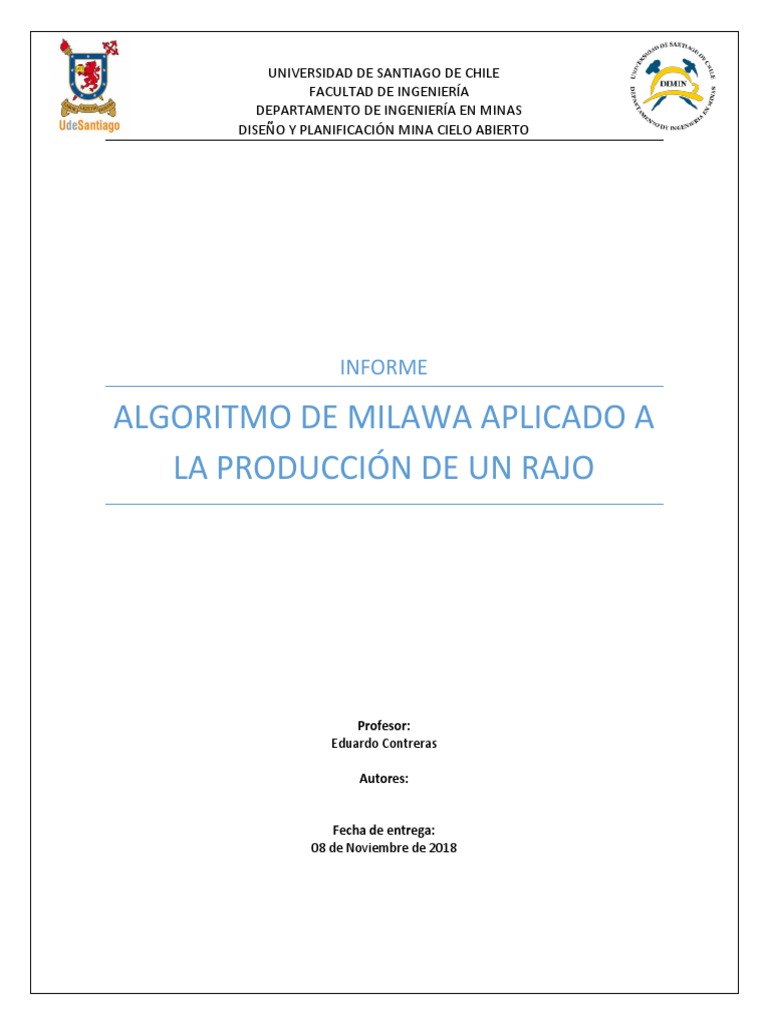 • Peralta, A. (s.f.). Curso de Diseño y Planeamiento Minero: Algoritmo de Milawa aplicado a