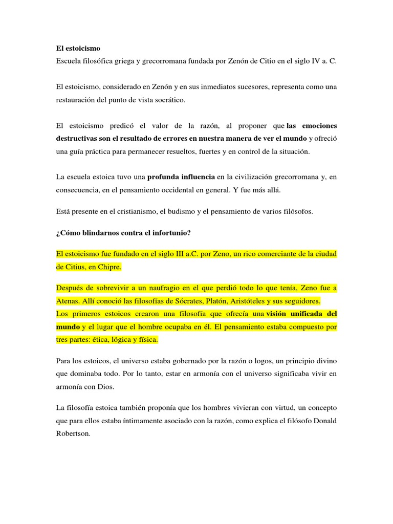 El estoicismo fue fundado en el siglo III a.C. por Zeno, un rico comerciante de la ciudad