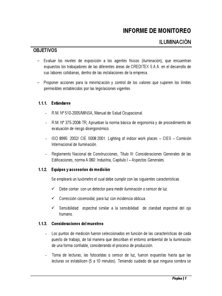puesto de trabajo, de tal manera que describan el entorno ambiental de la iluminación