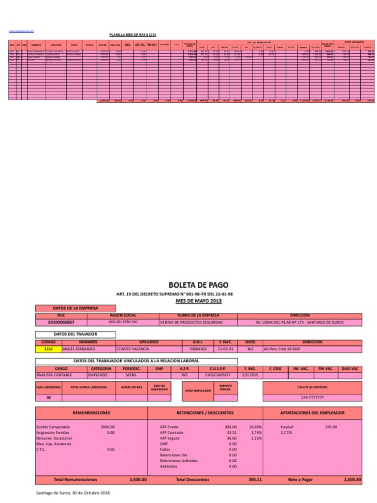 PLANILLA MES DE MAYO 2013