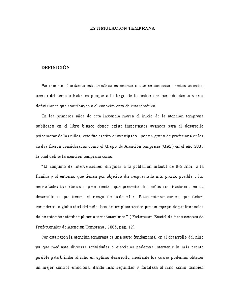 “(Federacion Estatal de Asociaciones de Profesionales de Atencion Temprana , 2005)