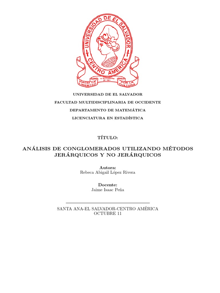 El Análisis Clúster , conocido como Análisis de Conglomerados, es una técnica estadı́stica multivariante que