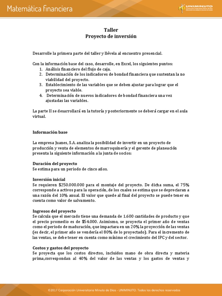 La empresa Juanes, S.A. analiza la posibilidad de invertir en un proyecto de