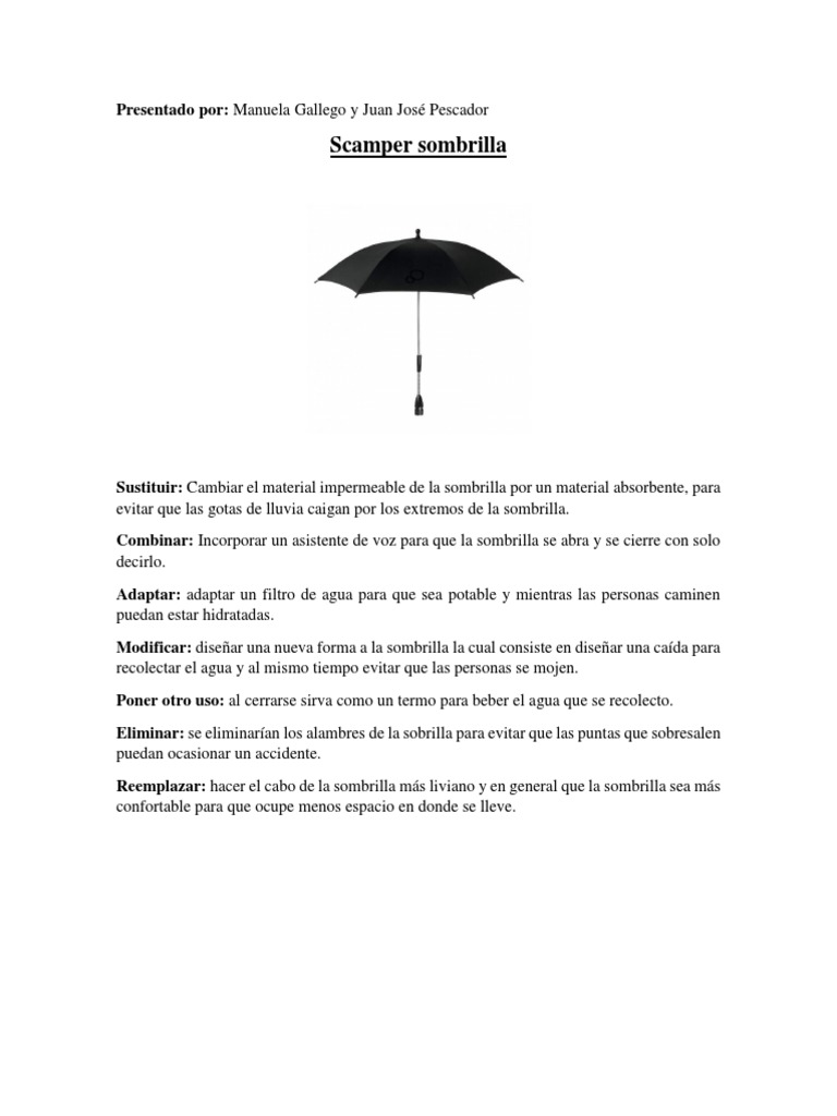 Reemplazar: hacer el cabo de la sombrilla más liviano y en general que la sombrilla sea más