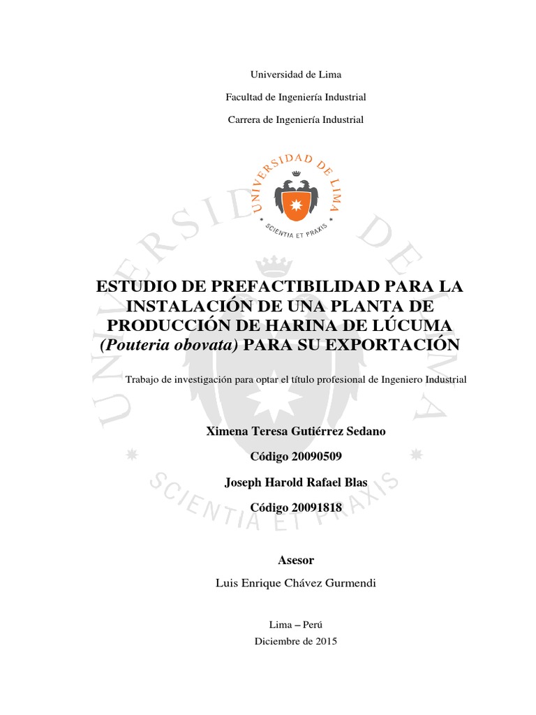 This research proposes the installation of a factory of lucuma flour for the