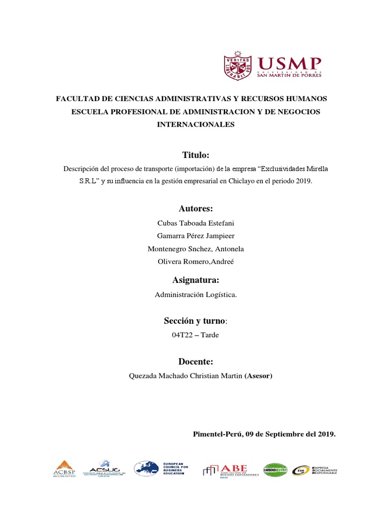 el proceso de transporte (importación) de la empresa “Exclusividades Mirella S.R.L” y su