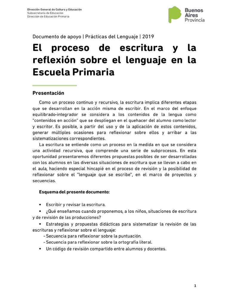 Practicas Del Lenguaje - El Proceso de Escritura y La Reflexion Sobre El Lenguaje en La Escuela Primaria - Documento de Apoyo