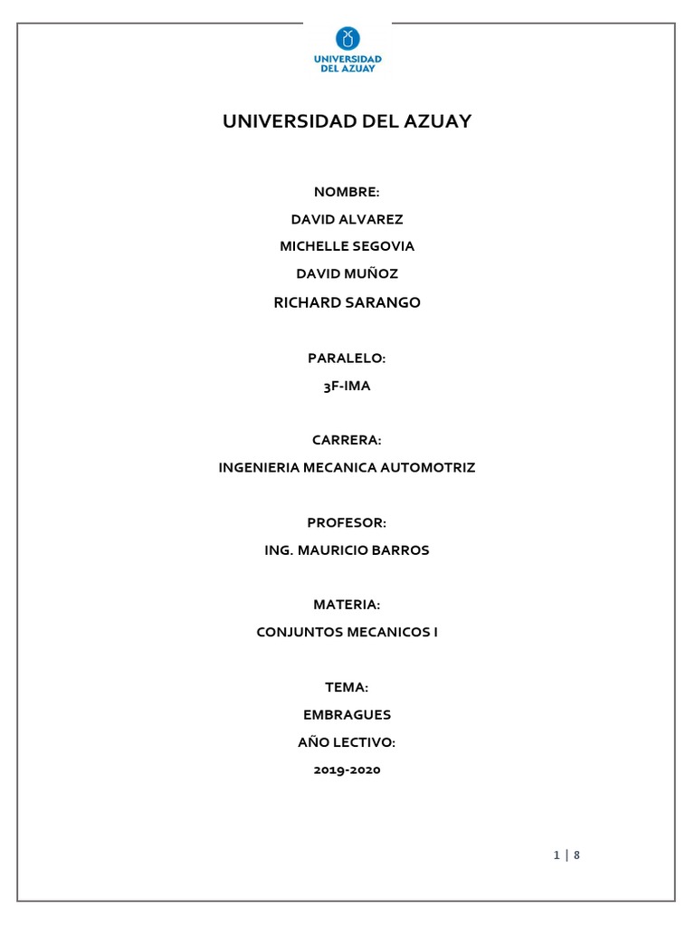PRÁCTICA No.3: EMBRAGUE MONODISCO DE FRICCION