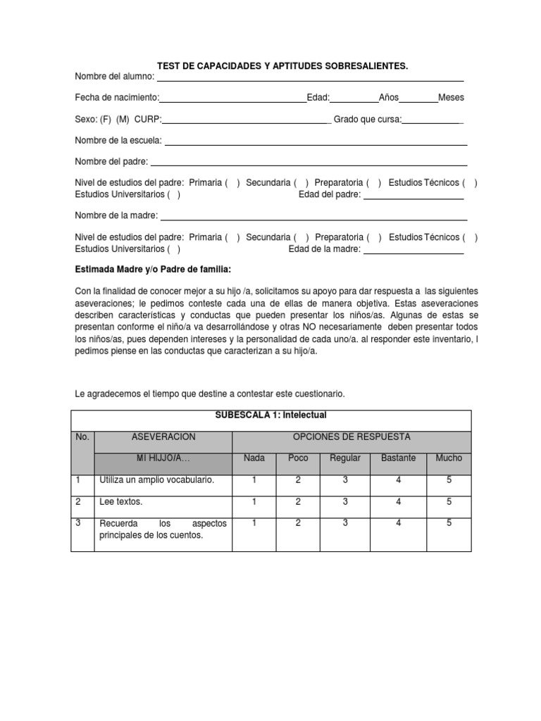 TEST DE CAPACIDADES Y APTITUDES SOBRESALIENTES.