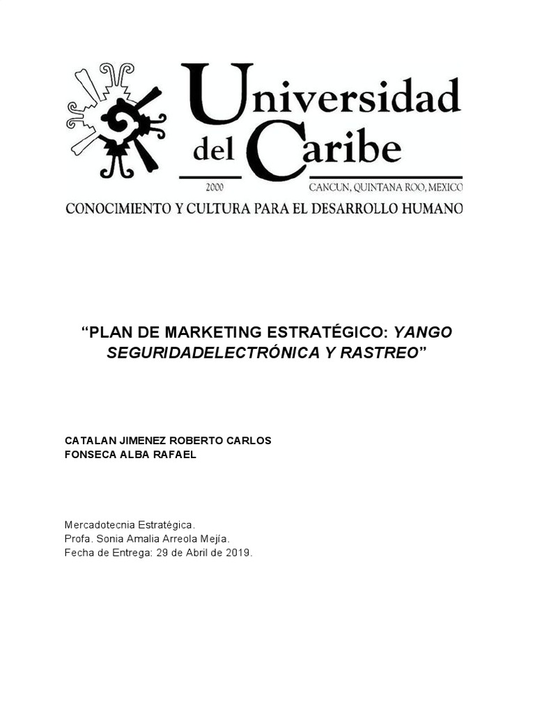 “PLAN DE MARKETING ESTRATÉGICO: YANGO