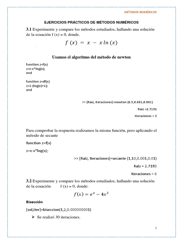 EJERCICIOS PRÁCTICOS DE MÉTODOS NUMÉRICOS