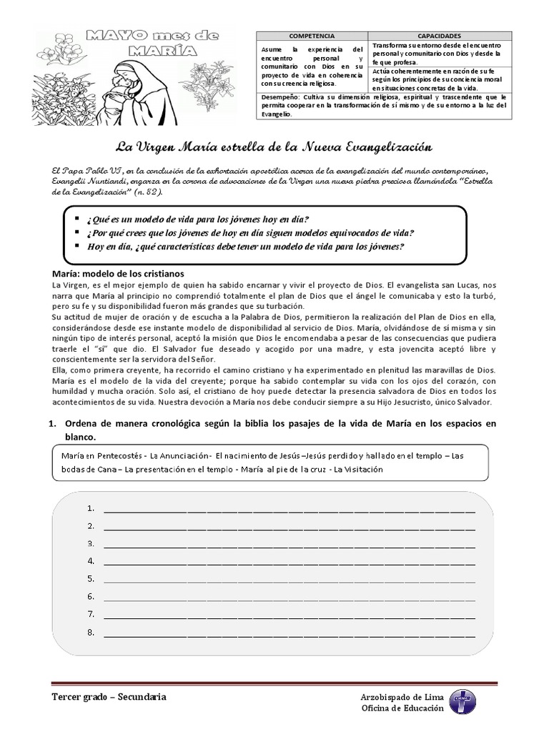 2. Contrasta las actitudes de la Virgen María como primera evangelizadora con las tuyas y elabora un