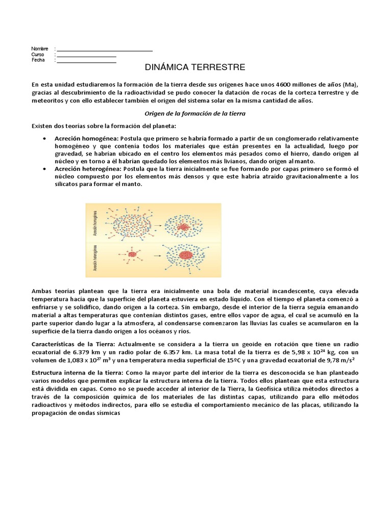 Acreción heterogénea: Postula que la tierra inicialmente se fue formando por capas primero se formó el