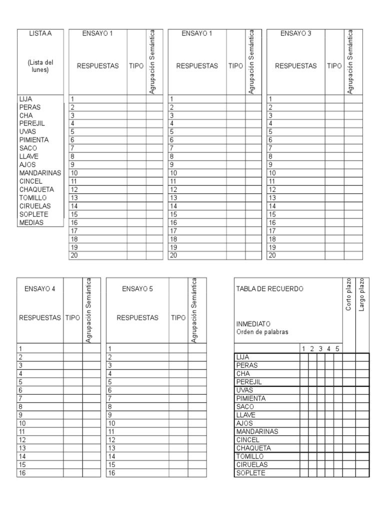 ENSAYO 4 ENSAYO 5 TABLA DE RECUERDO