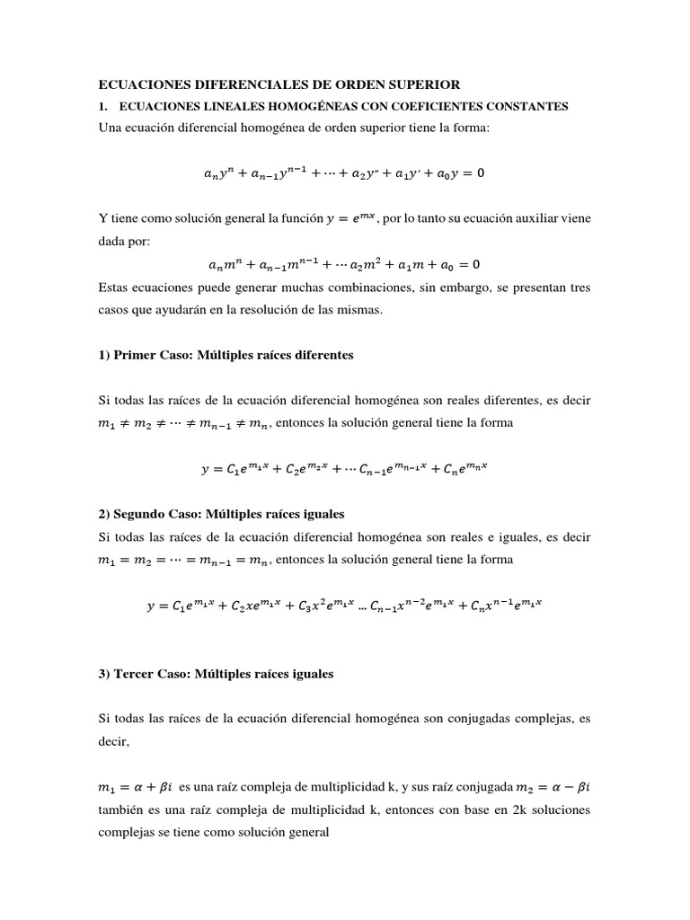 ECUACIONES DIFERENCIALES DE ORDEN SUPERIOR