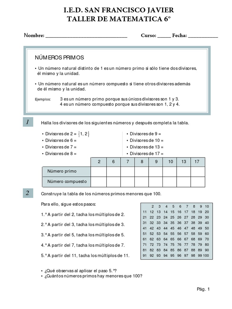 1 Halla los divisores de los siguientes números y después completa la tabla.