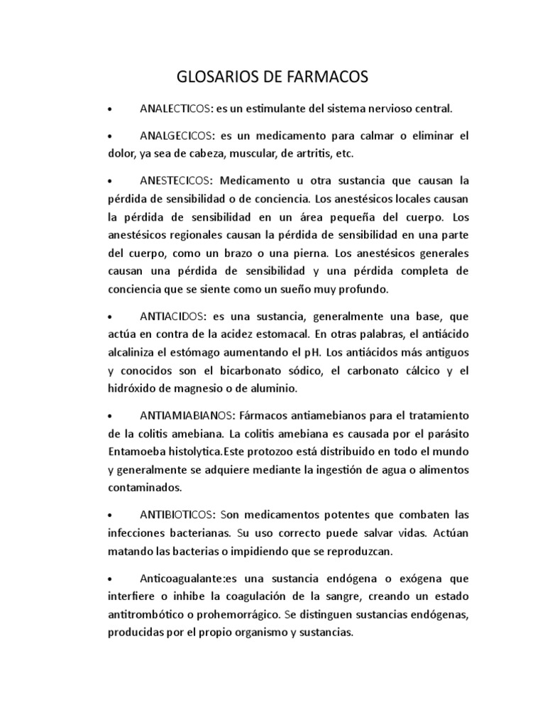 GLOSARIOS DE FARMACOS
