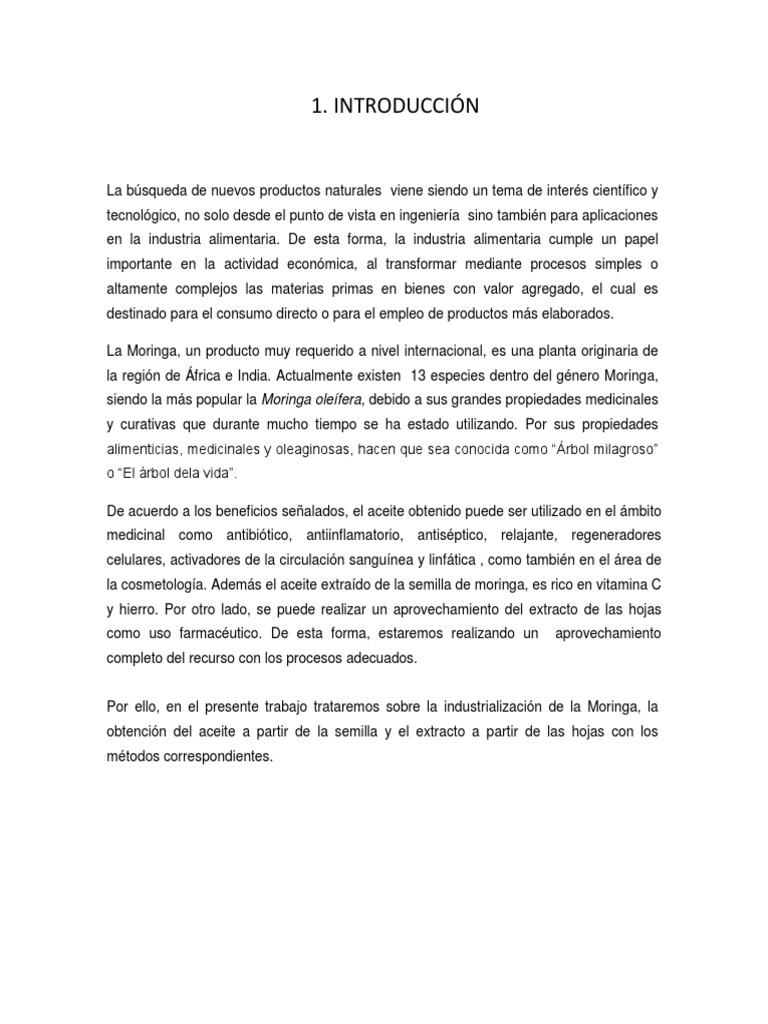 Por ello, en el presente trabajo trataremos sobre la industrialización de la Moringa, la