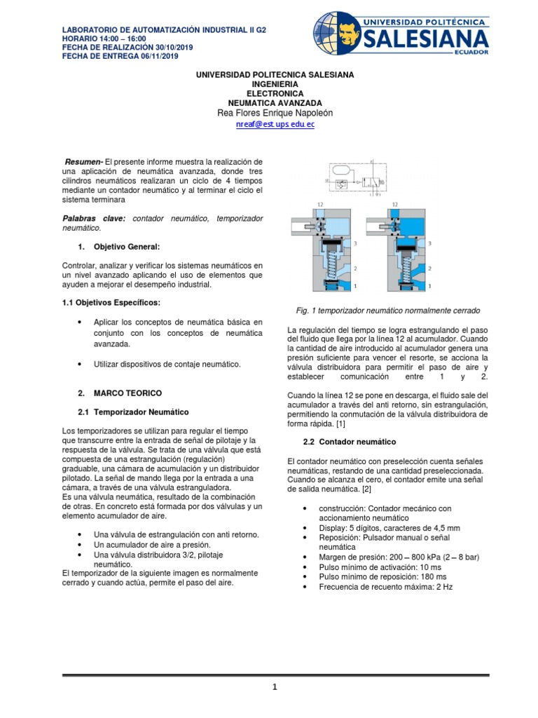 2.1 Temporizador Neumático permitiendo la conmutación de la válvula distribuidora de