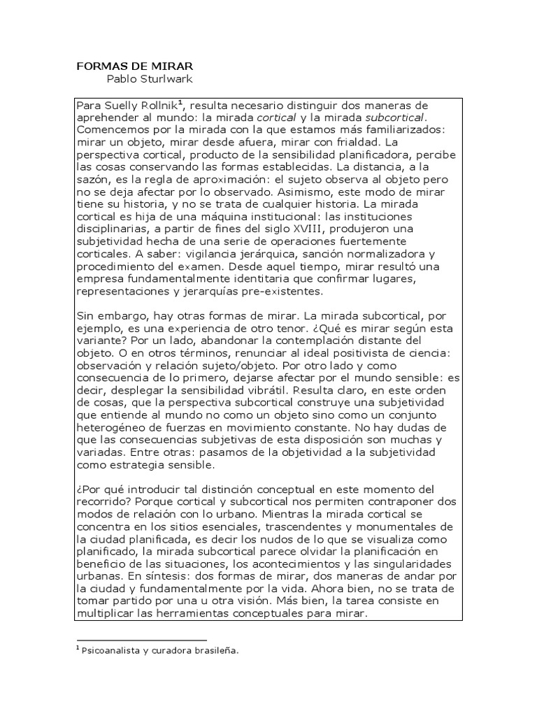 modos de relación con lo urbano. Mientras la mirada cortical se