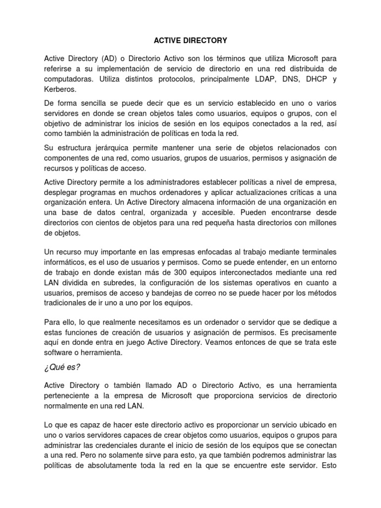 Active Directory (AD) o Directorio Activo son los términos que utiliza Microsoft para