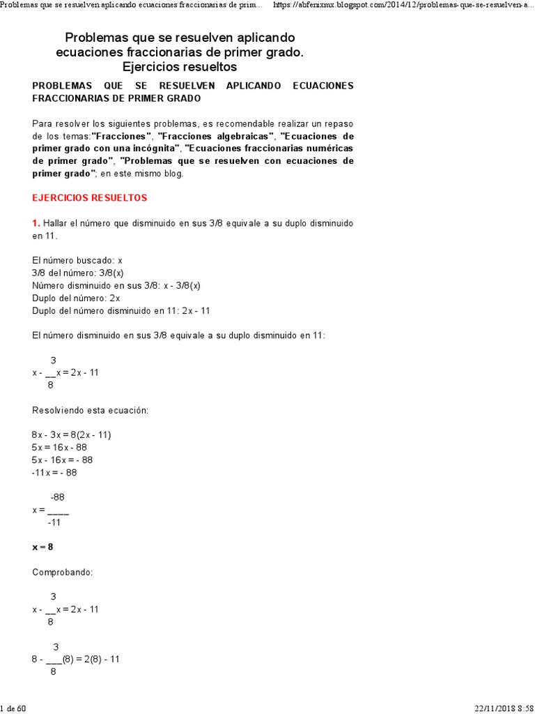 Problemas que se resuelven aplicando ecuaciones fraccionarias de prim... https://abfenixmx.blogspot.com/2014/12/problemas-que-se-resuelven-a...