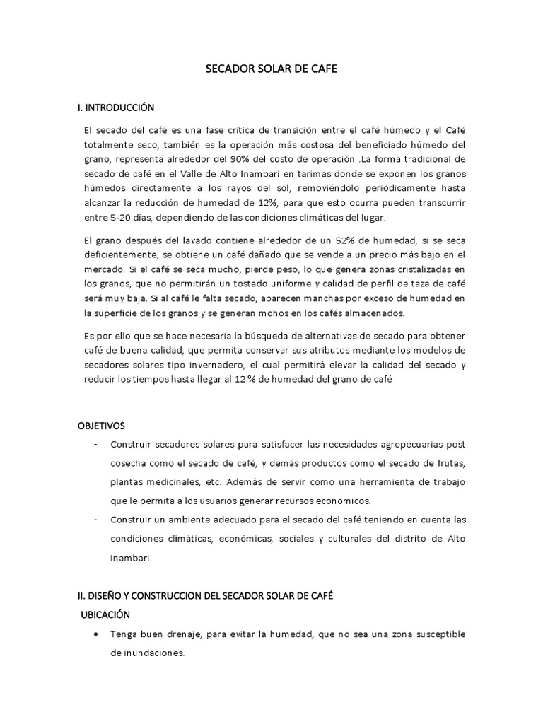 - Construir un ambiente adecuado para el secado del café teniendo en cuenta las