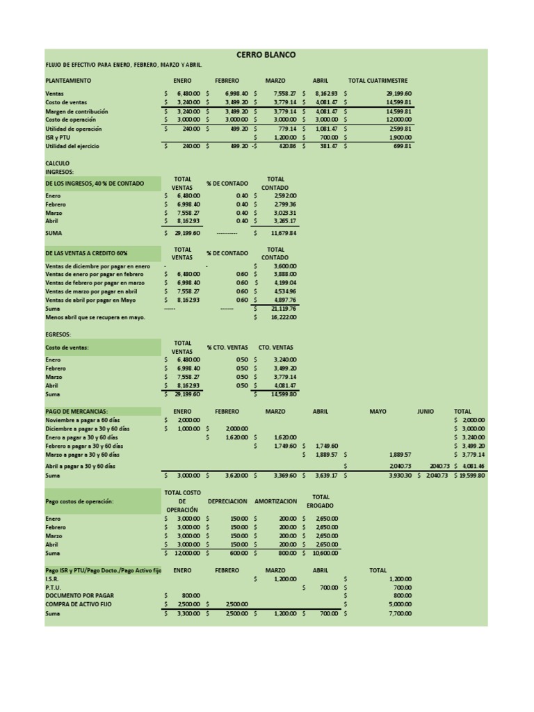 FLUJO DE EFECTIVO PARA ENERO, FEBRERO, MARZO Y ABRIL.