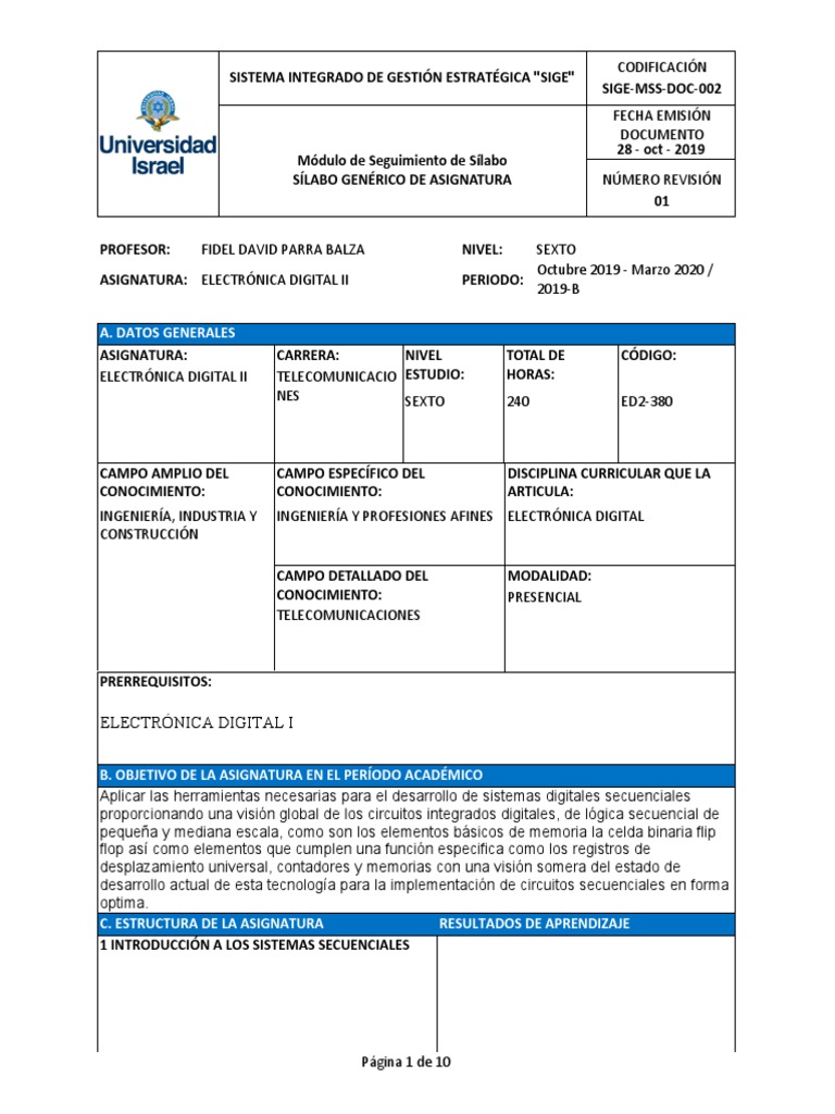 SÍLABO GENÉRICO DE ASIGNATURA NÚMERO REVISIÓN