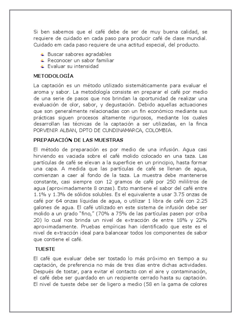 aroma y sabor. La metodología consiste en preparar el café por medio