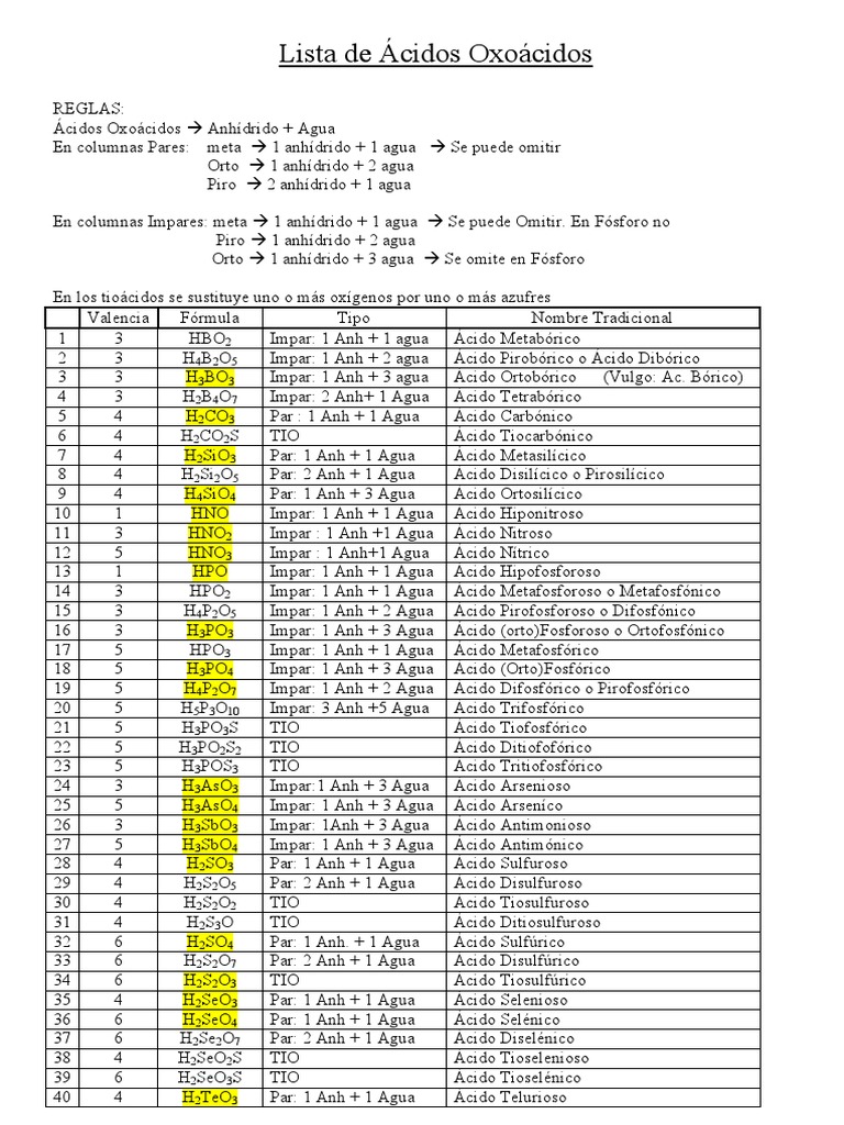 40 4 H2TeO3 Par: 1 Anh + 1 Agua Ácido Telurioso