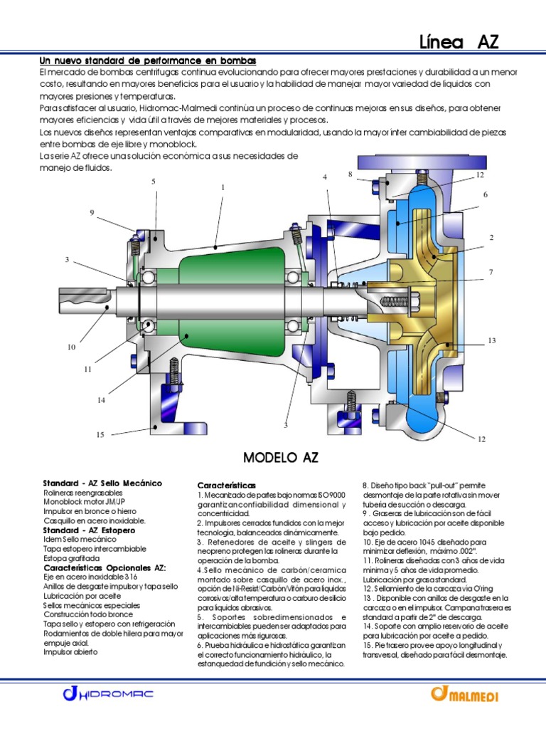 Características Opcionales AZ: [Link] mecánico de carbón/ceramica mínima y 5 años de vida promedio.
