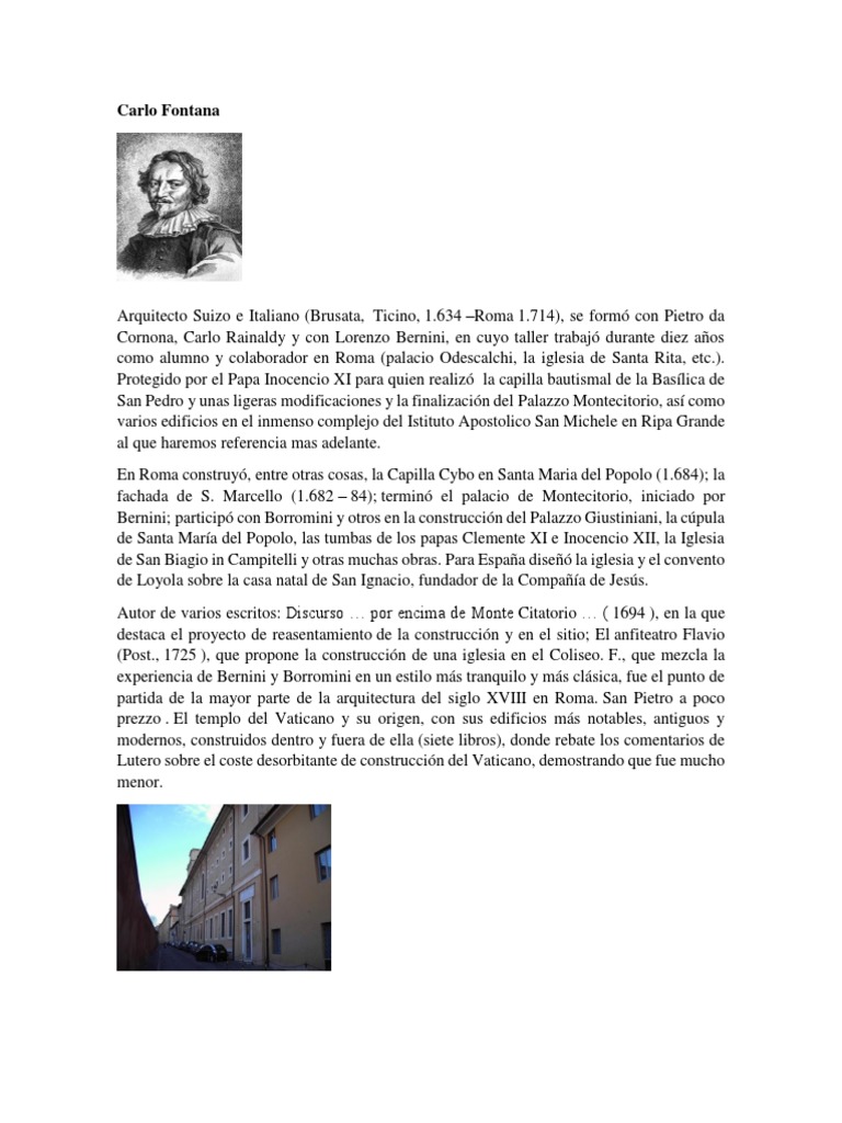 como alumno y colaborador en Roma (palacio Odescalchi, la iglesia de Santa Rita, etc.).