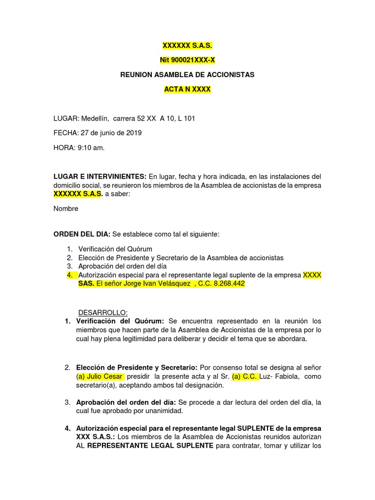 XXX S.A.S.: Los miembros de la Asamblea de Accionistas reunidos autorizan