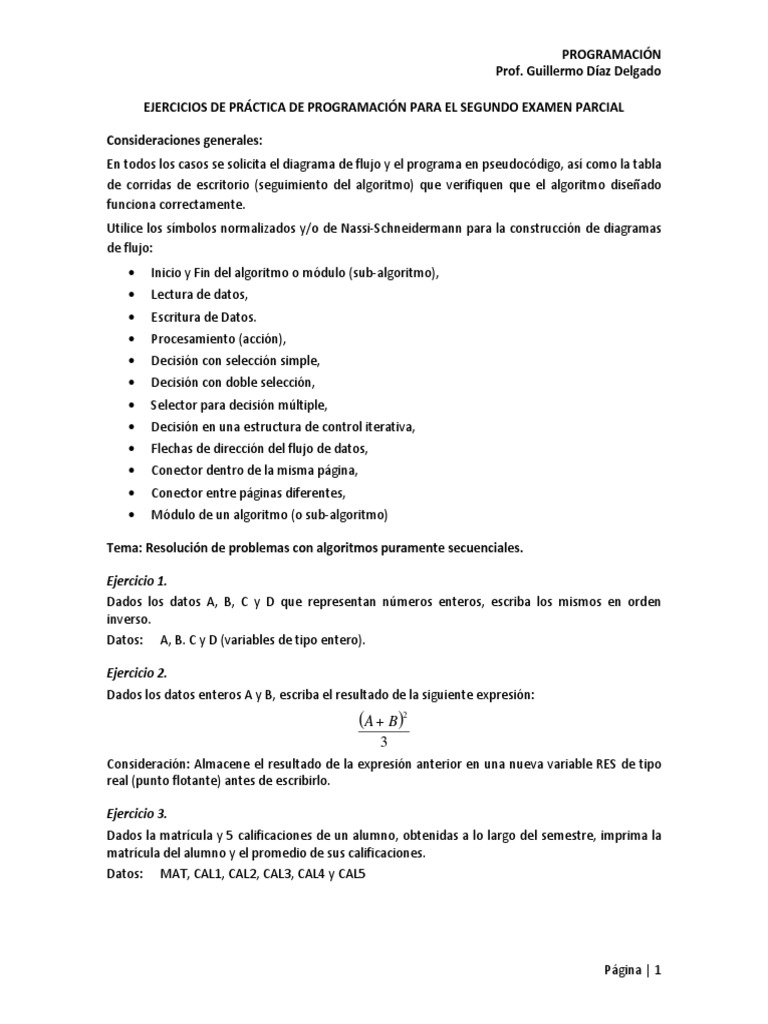 EJERCICIOS DE PRÁCTICA DE PROGRAMACIÓN PARA EL SEGUNDO EXAMEN PARCIAL
