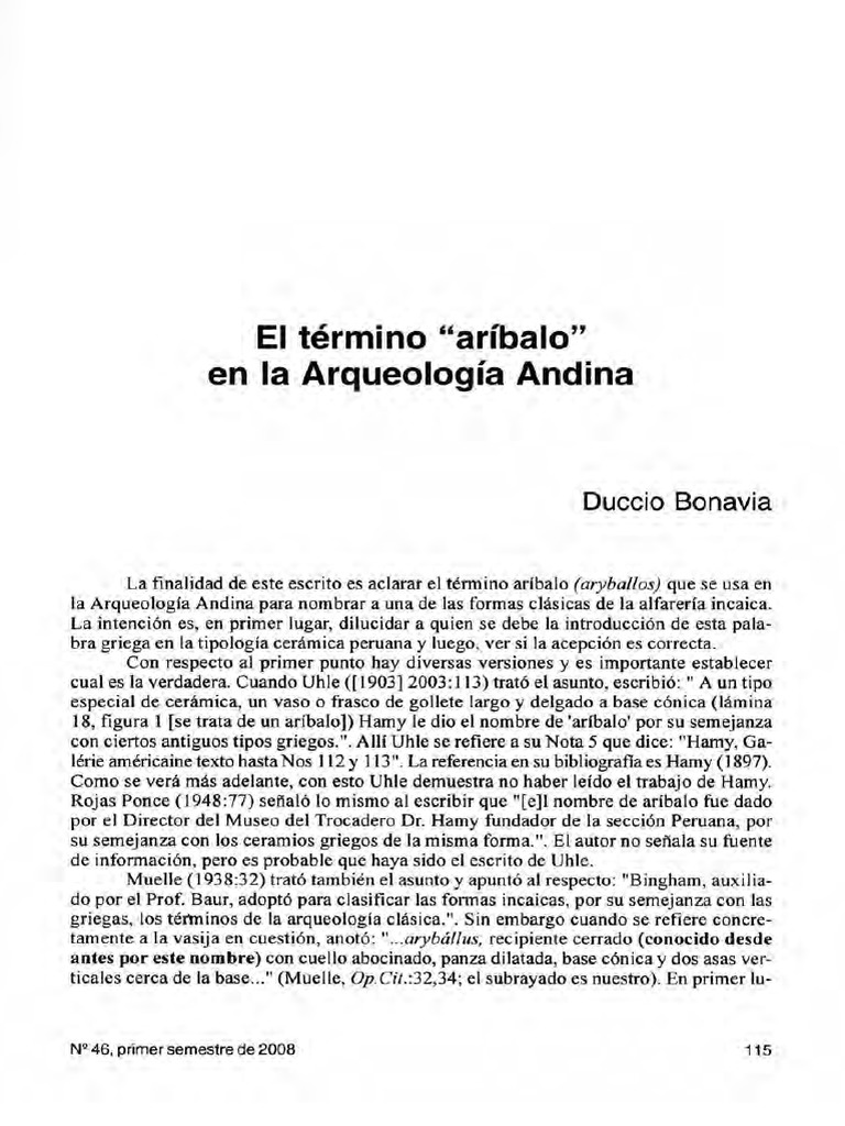 _ _ _ _ _ _ _ _ _ _ _ _ _ Duccio Bonavia: El término "aríbalo" en la Arqueología Andina