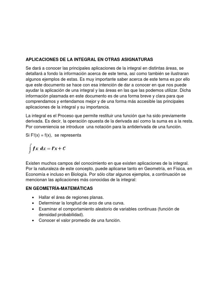APLICACIONES DE LA INTEGRAL EN OTRAS ASIGNATURAS