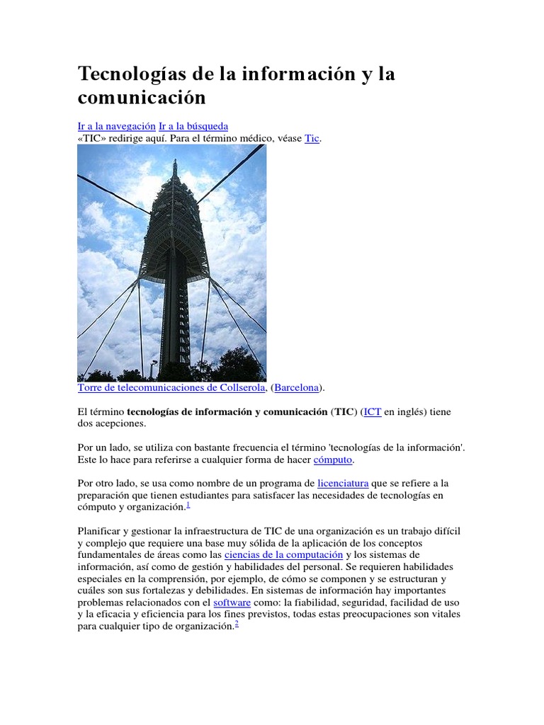 El término tecnologías de información y comunicación (TIC) (ICT en inglés) tiene