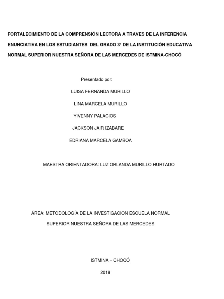 FORTALECIMIENTO DE LA COMPRENSIÓN LECTORA A TRAVES DE LA INFERENCIA