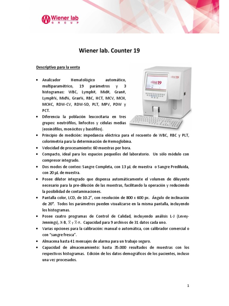 • Código de producto: 9261025 – Wiener lab. Counter 19.