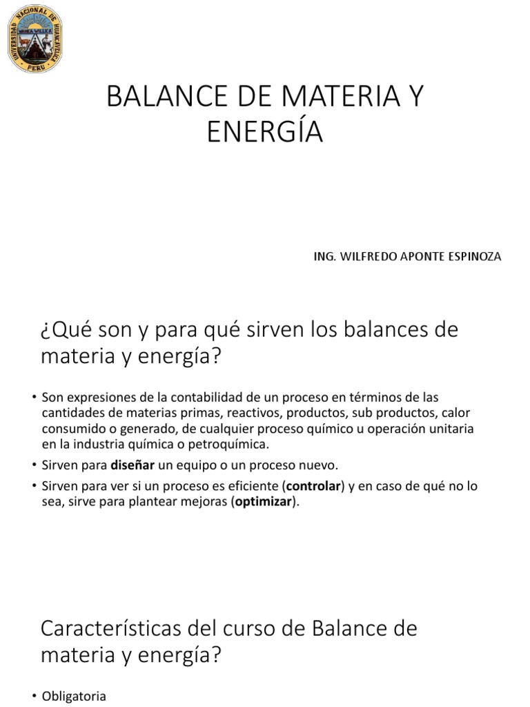 • Plantea y resuelve balances de materia y de energía aplicados a procesos químicos y